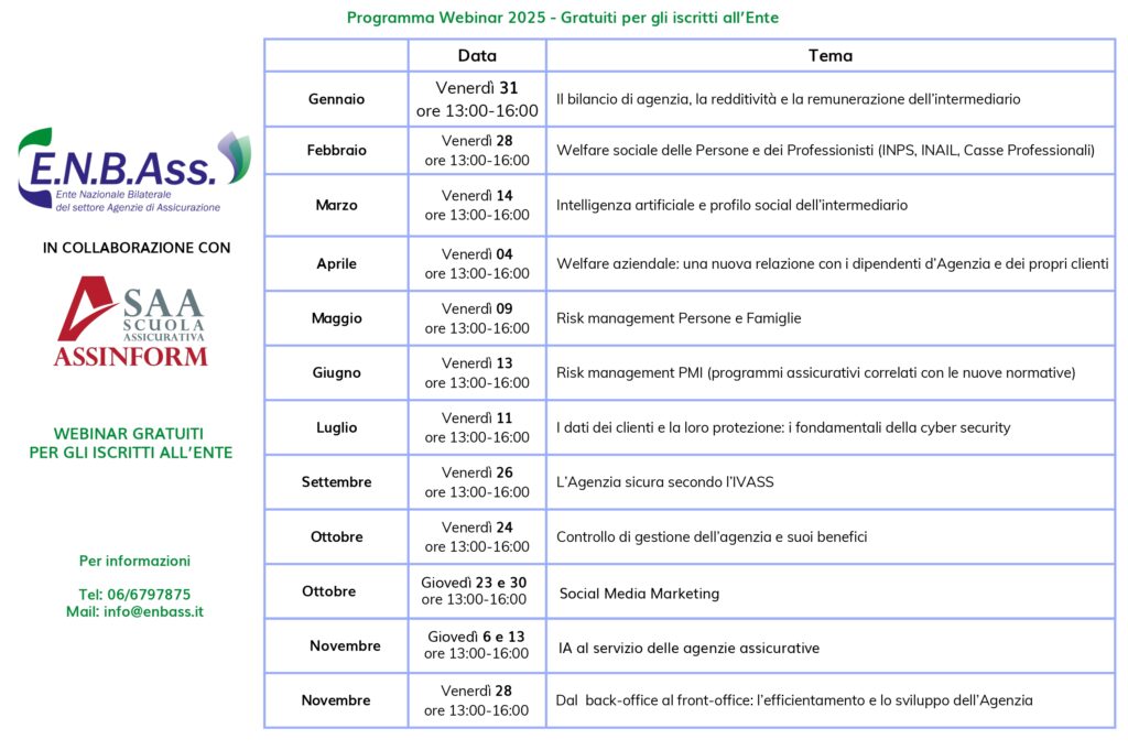 Programma Webinar 2025 – Gratuiti per gli iscritti all’Ente